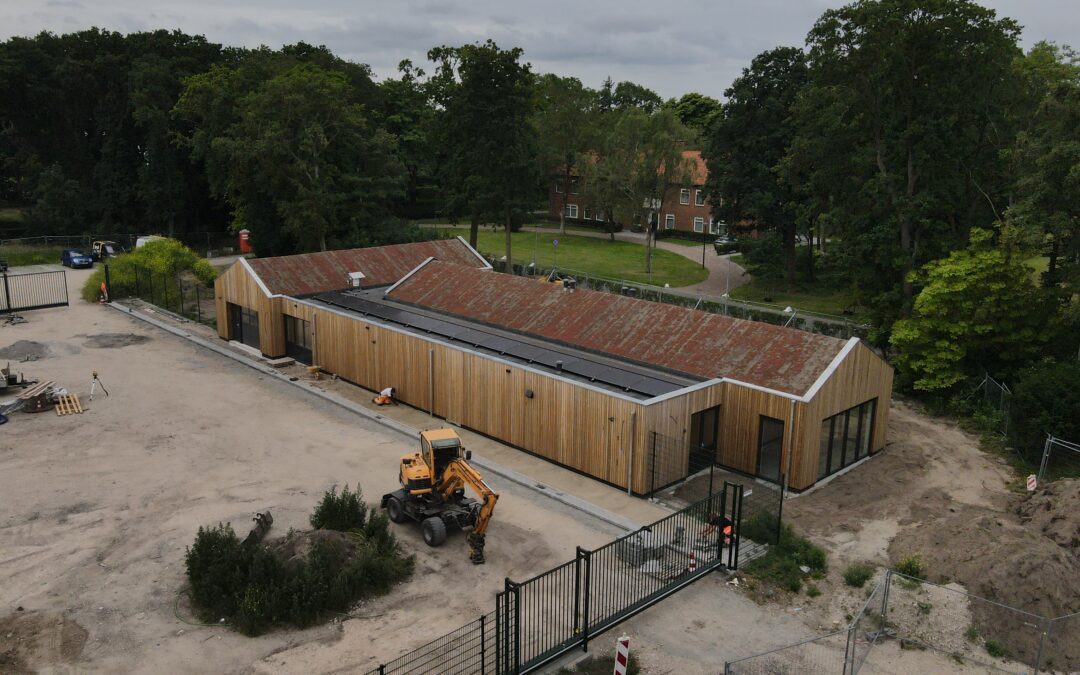 De nieuwbouw van de dagbesteding ecostraat en distributie, op Woonzorgpark Willem van den Bergh in Noordwijk. De mannen van YOMABOUW hebben de constructie en gevelafwerking mogelijk gemaakt. Dit project